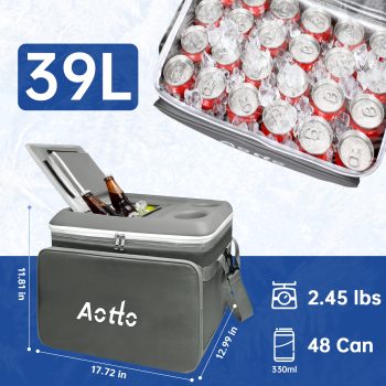 Aotto Insulated Cooler Bag for Men Women, 40 Can Soft Cooler Bag with Adjustable Shoulder Strap, Leakproof for Work, Camping, Travel, Picnic