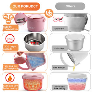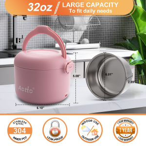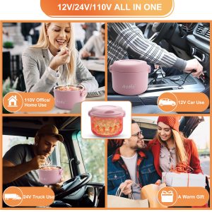 76 reviews for Aotto Electric Lunch Box, 50/70/80W 3 in 1 Portable Food Warmer Heated Lunch Boxes for Adults, 12V 24V 110V Food Heater for Car/Truck/Travel/Office/Work/Home 32oz Leakproof Mini Personal Pink