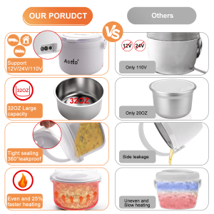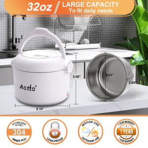 103 reviews for Aotto Electric Lunch Box, 50/70/80W 3 in 1 Portable Food Warmer Heated Lunch Boxes for Adults, Food Heater for Car/Truck/Travel/Office/Work/Home 12V 24V 110V Mini 32oz Leakproof White